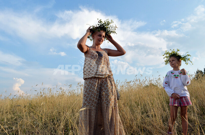ニュース ライフ スラブ伝統の祭り「イワン・クパーラの夜」 2013年7月9日 15:07 発信地:ウクライナ [ ロシア・CIS ウクライナ ] このニュースをシェア ‹ › ❮ 17/17 ❯ 伝統的なスラブ民族の祭り「イワン・クパーラ(Ivan Kupala)の夜」が6日、東欧各地で行われた。起源をキリスト教以前にまでさかのぼるというこの祭りでは、人々が花輪を編んだり、たき火を飛び越えたり、裸で泳いだりして祝う。写真はウクライナの首都キエフ(Kiev)近郊で、草の冠をかぶった母娘(2013年7月6日撮影)。(c)AFP/SERGEI SUPINSKY 画像作成中 ! 【7月9日 AFP】伝統的なスラブ民族の祭り「イワン・クパーラ(Ivan Kupala)の夜」が6日、東欧各地で行われた。起源をキリスト教以前にまでさかのぼるというこの祭りでは、人々が花輪を編んだり、たき火を飛び越えたり、裸で泳いだりして祝う。(c)AFP ライフ 一覧へ> メディア・報道関係・法人の方向け 写真・動画 購入のお問合せ>