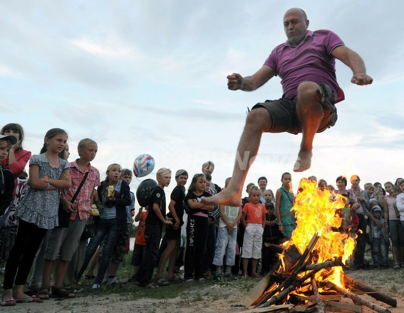 ニュース ライフ スラブ伝統の祭り「イワン・クパーラの夜」 2013年7月9日 15:07 発信地:ウクライナ [ ロシア・CIS ウクライナ ] このニュースをシェア ‹ › ❮ 4/17 ❯ 伝統的なスラブ民族の祭り「イワン・クパーラ(Ivan Kupala)の夜」が6日、東欧各地で行われた。起源をキリスト教以前にまでさかのぼるというこの祭りでは、人々が花輪を編んだり、たき火を飛び越えたり、裸で泳いだりして祝う。写真はベラルーシ南部トゥーロフ(Turov)で、たき火を飛び越える男性(2013年7月6日撮影)。(c)AFP/VIKTOR DRACHEV 画像作成中 ! 【7月9日 AFP】伝統的なスラブ民族の祭り「イワン・クパーラ(Ivan Kupala)の夜」が6日、東欧各地で行われた。起源をキリスト教以前にまでさかのぼるというこの祭りでは、人々が花輪を編んだり、たき火を飛び越えたり、裸で泳いだりして祝う。(c)AFP ライフ 一覧へ> メディア・報道関係・法人の方向け 写真・動画 購入のお問合せ>