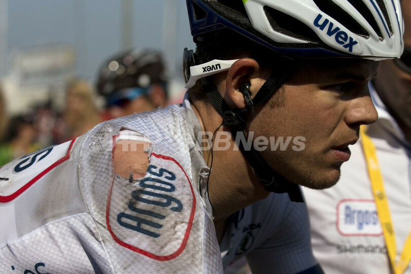 第10ステージで落車したアルゴス・シマノ(Argos-Shimano)のトム・フィーラース(Tom Veelers、2013年7月9日撮影)。(c)AFP/JEFF PACHOUD