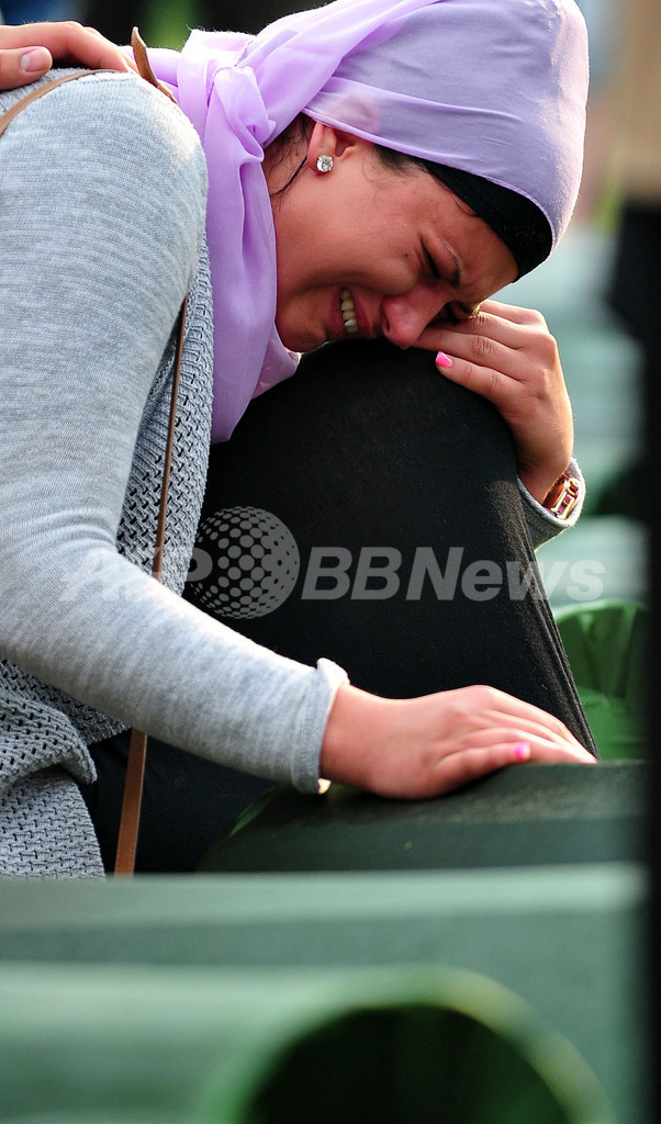11日は、第2次世界大戦(World War II)後の欧州で最悪の大虐殺とされるこのスレブレニツァの虐殺から18年目に当たる日だった。スレブレニツァではこの日、新たに身元が確認された409人の犠牲者の遺体が再埋葬された。うち1人は、生まれたばかりの赤ちゃんだった。(c)AFP/Jan HENNOP