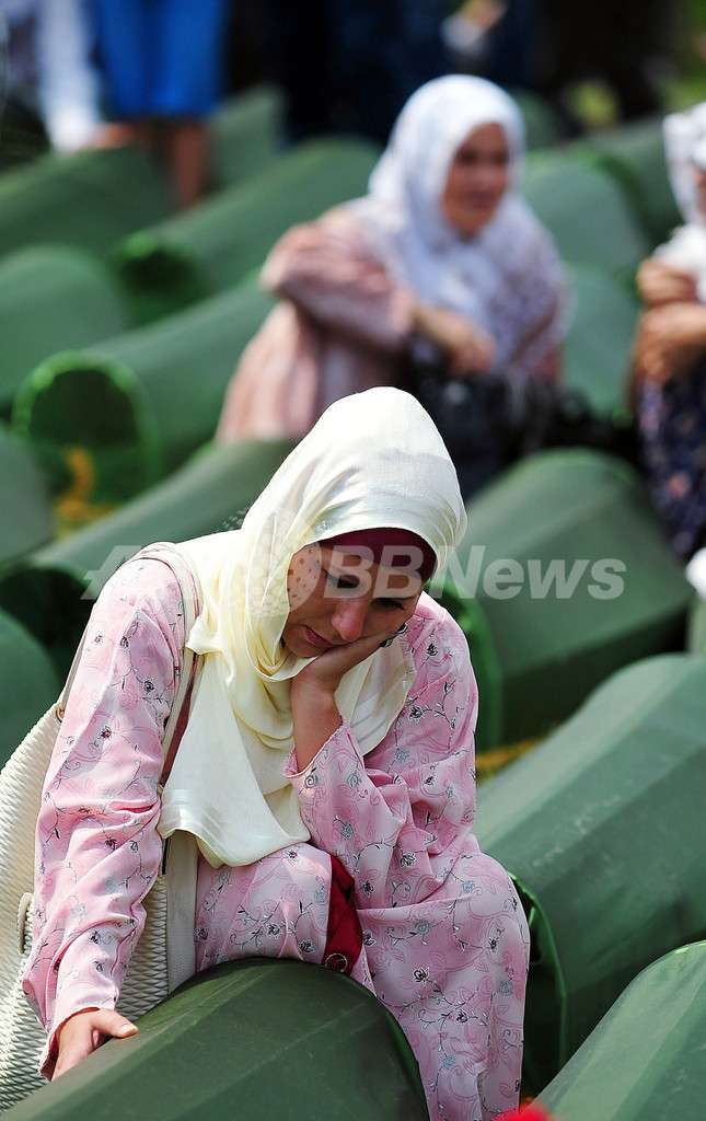 11日は、第2次世界大戦(World War II)後の欧州で最悪の大虐殺とされるこのスレブレニツァの虐殺から18年目に当たる日だった。スレブレニツァではこの日、新たに身元が確認された409人の犠牲者の遺体が再埋葬された。うち1人は、生まれたばかりの赤ちゃんだった。(c)AFP/Jan HENNOP