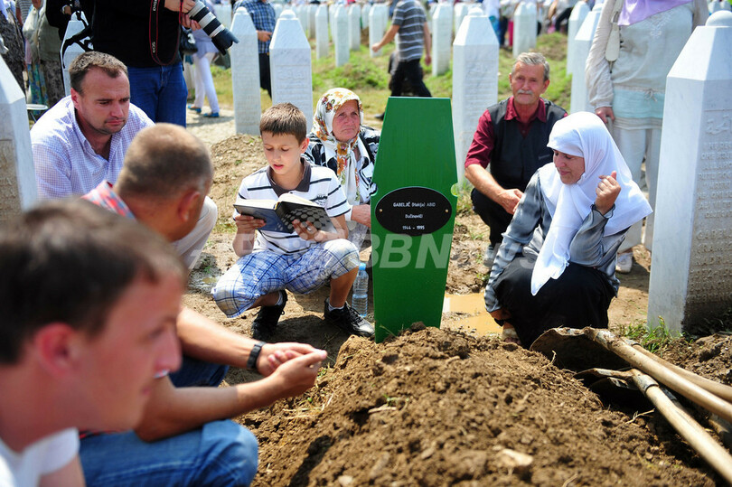 スレブレニツァ近郊ポトチャリ(Potocari)の記念墓地では、昨年遺骨が発見されたうち新たに身元が判明した409人の犠牲者の埋葬式典が行われ、1万5000人を超える人々が参列して祈りを捧げた。今回埋葬された犠牲者には、14~18歳の少年44人と女性2人のほか、セルビア人から逃げてきたイスラム系女性がポトチャリの国連軍基地で出産し、直後に死亡した新生児の女児も含まれている。この女児の遺体は、虐殺で犠牲となった父親の墓の隣に埋葬された。