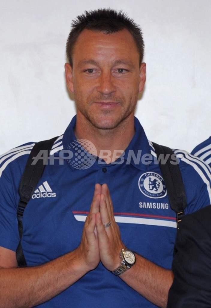 タイの作法に倣い、手を合わせて挨拶するチェルシーのジョン・テリー(John Terry、2013年7月12日撮影)。(c)AFP/PORNCHAI KITTIWONGSAKUL