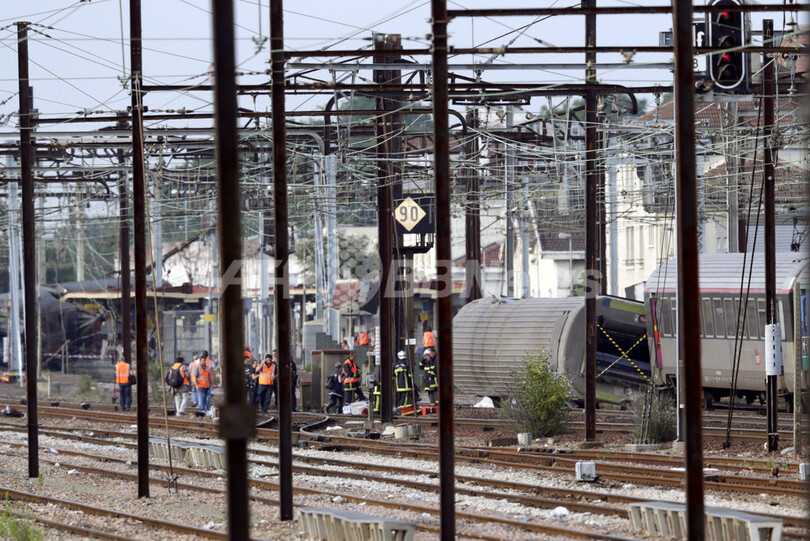 フランス国鉄筋はAFPに対し、「衝突事故ではないしスピードの出しすぎの問題でもない」と述べた。当局によると、同列車は通常、時速150キロメートルで同駅を通過するという。(c)AFP/Diane FALCONER, Julie CHABANAS