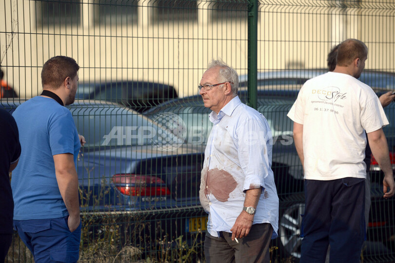 写真は、事故現場付近を歩く衣服に血が付いた男性(2013年7月12日撮影)。(c)AFP/MARTIN BUREAU