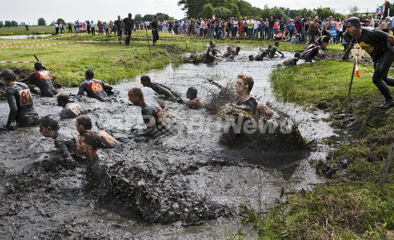 ニュース ライフ こぼれ話 恒例の「泥マラソン」大会開催、オランダ 2013年7月15日 14:21 発信地:スケルメルホルン/オランダ [ ヨーロッパ オランダ ] このニュースをシェア ‹ › ❮ 3/4 ❯ 36回目を数える「泥マラソン(Slush Marathon)」大会で、全長およそ1000メートルのコース各所に配置された合計20にも及ぶ泥の水路を、泥まみれになりながら渡る参加者たち(2013年7月14日撮影)。(c)AFP/ANP/KOEN SUYK 画像作成中 ! 【7月15日 AFP】オランダ北部プルムレンド(Purmerend)近郊のスケルメルホルン(Schermerhorn)で14日、36回目を数える「泥マラソン(Slush Marathon)」大会が開催された。全長およそ1000メートルのコース各所に配置された合計20にも及ぶ泥の水路を、参加者たちは泥まみれになりながら渡っていた。(c)AFP ライフ 一覧へ> メディア・報道関係・法人の方向け 写真・動画 購入のお問合せ>