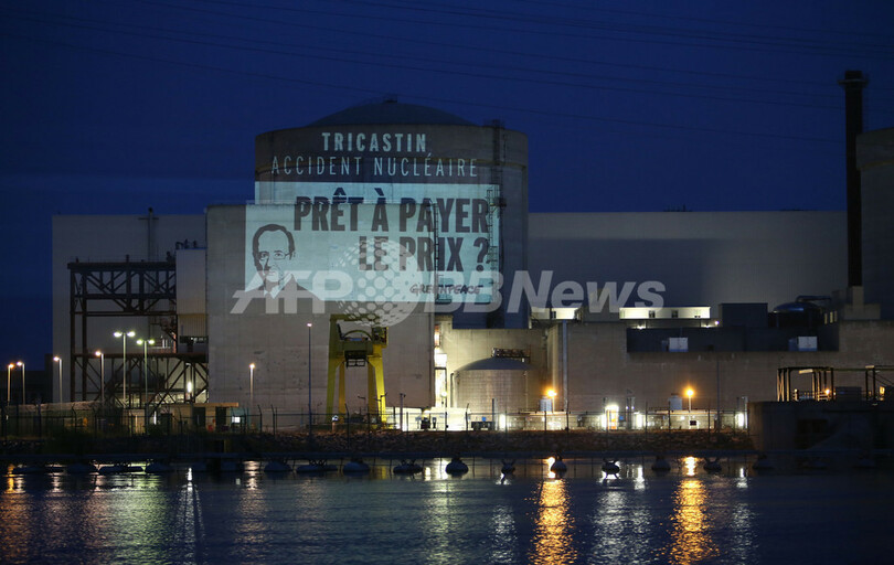 仏原発に侵入、壁にメッセージを投影 グリーンピース