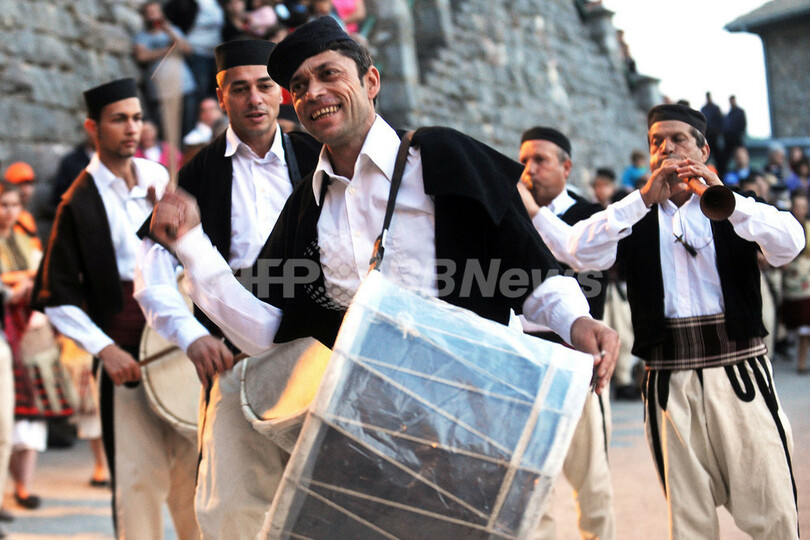 ニュース ライフ マケドニアの山あいの村で続く、伝統の結婚式 2013年7月17日 15:42 発信地:ガリクニック/北マケドニア [ ヨーロッパ 北マケドニア ] このニュースをシェア ‹ › ❮ 4/12 ❯ マケドニア西部、首都スコピエ(Skopje)から南西へ150キロメートルほど離れた村ガリクチニク(Galicnik)で13日、結婚式の前夜に、たいまつを持った若い男女が列を成して婚礼を祝う姿が見られた。毎年、マケドニア正教の聖ペトロの祝日近くになると、ガリクチニク出身のマケドニア人たちは、荒涼とした山あいの村に集まり、地域の伝統にのっとった結婚式を催す。写真は、結婚式前夜に、伝統衣装に身を包み、音楽を奏でながら行進するミュージシャンたち(2013年7月13日撮影)。(c)AFP/ROBERT ATANASOVSKI 画像作成中 ! 【7月17日 AFP】マケドニア西部、首都スコピエ(Skopje)から南西へ150キロメートルほど離れた村ガリクチニク(Galicnik)で13日、結婚式の前夜に、たいまつを持った若い男女が列を成して婚礼を祝う姿が見られた。毎年、マケドニア正教の聖ペトロの祝日近くになると、ガリクチニク出身のマケドニア人たちは、荒涼とした山あいの村に集まり、地域の伝統にのっとった結婚式を催す。(c)AFP ライフ 一覧へ> メディア・報道関係・法人の方向け 写真・動画 購入のお問合せ>
