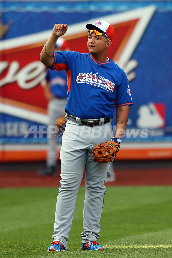 練習に臨むア・リーグのミゲル・カブレラ(Miguel Cabrera、2013年7月15日撮影)。(c)AFP/Getty Images/Mike Ehrmann