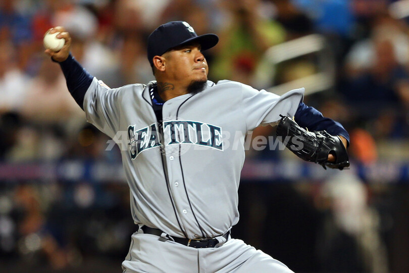 登板するア・リーグのフェリックス・ヘルナンデス(Felix Hernandez、2013年7月16日撮影)。(c)AFP/Getty Images/Mike Ehrmann