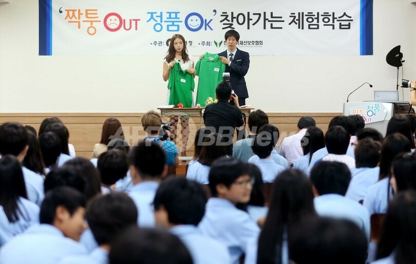Kwang-Shin Middle School)で15日、韓国知識財産保護協会主催の体験学習「偽造商品、流通根絶キャンペーン」に女優のパク・シネ(