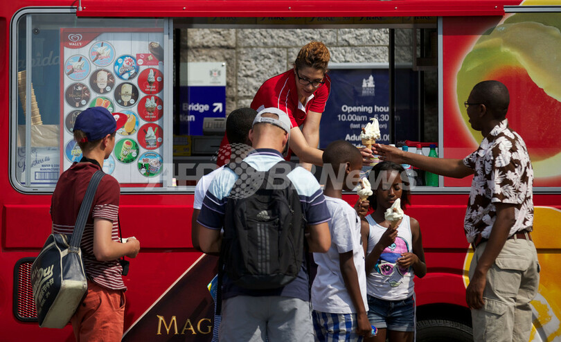 写真は、ロンドン(London)中心部で、アイスクリームを求めて列をつくる人々(2013年7月17日撮影)。(c)AFP/ANDREW COWIE
