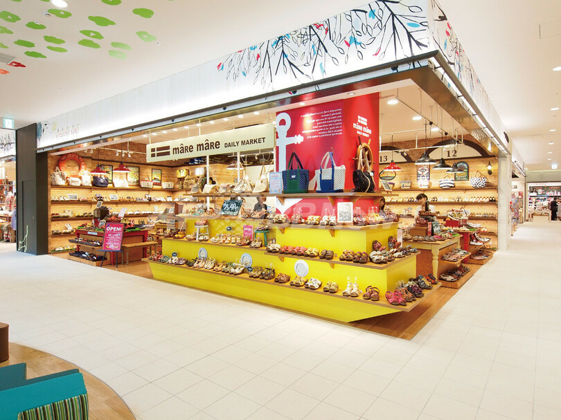【7月19日 senken h】オリジナルの凝ったデザインや、一度履いたら手放したくないリラックス感のある靴でリピーターを増やしている神戸発ブランド「マーレマーレ デイリーマーケット」。アイテムバリエーションの豊富さに加え毎日のコーディネートや気分によって履きかえられるシューズがプチプライスで見つかるのもマーレマーレの魅力。マークイズみなとみらい店は、ゆったりした空間に舟をイメージさせる什器や碇・船窓が随所に飾られ港町を連想させる。カラーアイテムが充実し、楽しさあふれるショップとなっている。