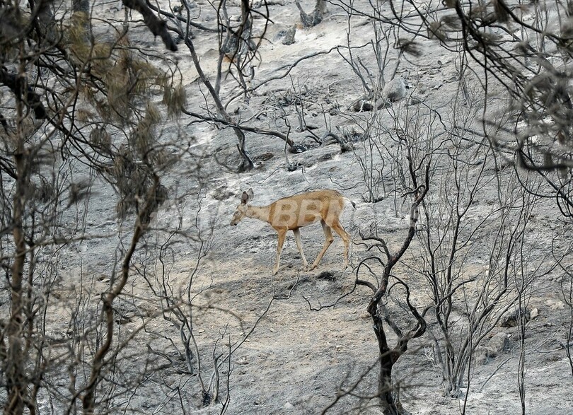 写真はアイディルワイルド近郊で、山火事で全焼した山林を餌を求めてさまようシカ(2013年7月18日撮影)。(c)AFP/Getty Images/Kevork Djansezian