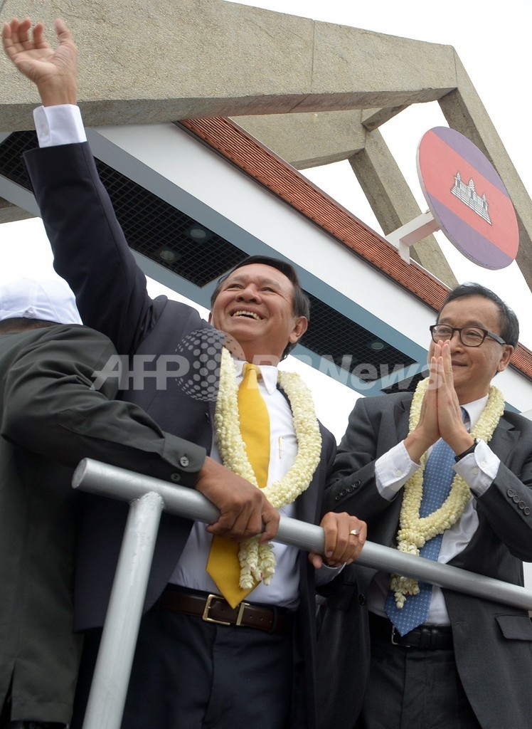 【7月19日 AFP】今月末に総選挙を控えたカンボジアで19日、最大野党カンボジア救国党(Cambodia National Rescue Party、CNRP)のサム・レンシー(Sam Rainsy)党首(64)が事実上の亡命生活を送っていたフランスから帰国した。