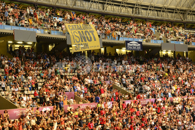 スポーツ スポーツ その他 世界水泳の開会式で華麗なパフォーマンス 2013年7月20日 12:39 発信地:バルセロナ/スペイン [ ヨーロッパ スペイン ] このニュースをシェア ‹ › ❮ 6/9 ❯ 第15回世界水泳選手権(15th FINA World Championships)は19日、スペイン・バルセロナ(Barcelona)のパラウ・サンジョルディ(Palau Sant Jordi)で開会式が行われた。「カタルニアはスペインじゃない」と書かれた横断幕(2013年7月19日撮影)。(c)AFP/JAVIER SORIANO 画像作成中 ! 【7月20日 AFP】第15回世界水泳選手権(15th FINA World Championships)は19日、スペイン・バルセロナ(Barcelona)のパラウ・サンジョルディ(Palau Sant Jordi)で開会式が行われた。(c)AFP スポーツ その他 一覧へ> メディア・報道関係・法人の方向け 写真・動画 購入のお問合せ>
