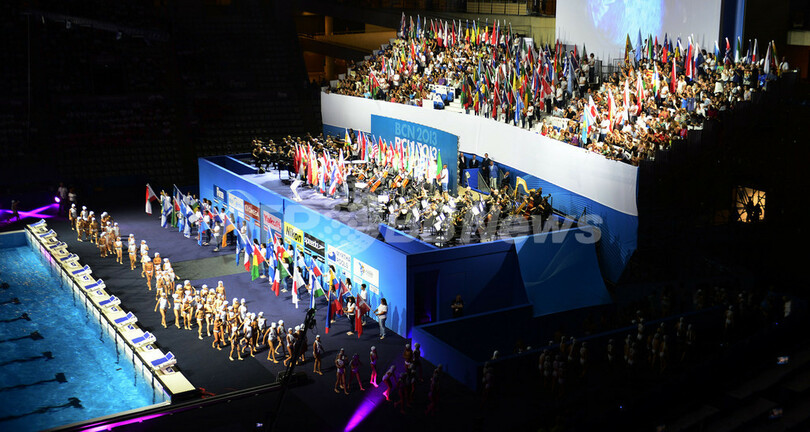 スポーツ スポーツ その他 世界水泳の開会式で華麗なパフォーマンス 2013年7月20日 12:39 発信地:バルセロナ/スペイン [ ヨーロッパ スペイン ] このニュースをシェア ‹ › ❮ 3/9 ❯ 第15回世界水泳選手権(15th FINA World Championships)は19日、スペイン・バルセロナ(Barcelona)のパラウ・サンジョルディ(Palau Sant Jordi)で開会式が行われた。参加国の国旗が掲げられる中、ステージに集まる各国の選手団(2013年7月19日撮影)。(c)AFP/JAVIER SORIANO 画像作成中 ! 【7月20日 AFP】第15回世界水泳選手権(15th FINA World Championships)は19日、スペイン・バルセロナ(Barcelona)のパラウ・サンジョルディ(Palau Sant Jordi)で開会式が行われた。(c)AFP スポーツ その他 一覧へ> メディア・報道関係・法人の方向け 写真・動画 購入のお問合せ>