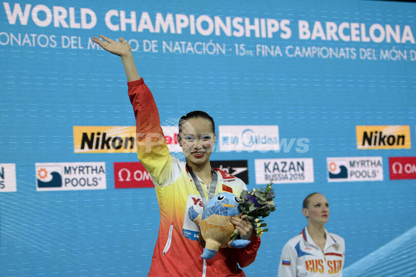【7月21日 AFP】第15回世界水泳選手権(15th FINA World Championships)は20日、スペイン・バルセロナ(Barcelona)でシンクロナイズドスイミングのソロテクニカルルーティン(TR)が行われ、ロシアのスベトラナ・ロマシナ(Svetlana Romashina)が96.800点で優勝した。