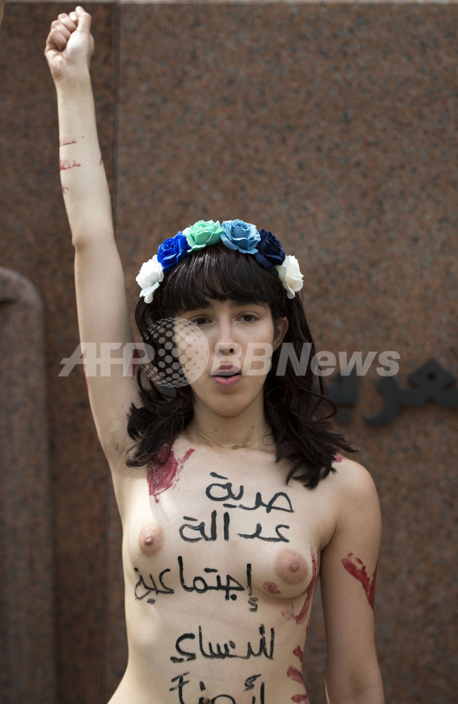 女性権利団体FEMEN、エジプト大使館前でトップレス抗議