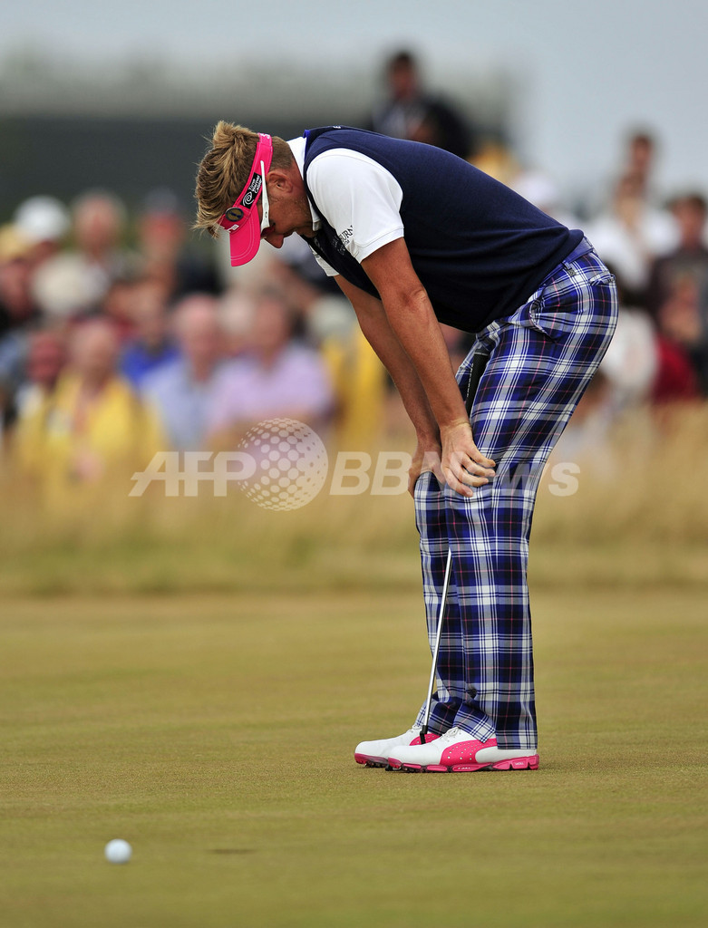 16番ホールでパットを外し落胆するイアン・ポールター(Ian Poulter、2013年7月21日撮影)。(c)AFP/GLYN KIRK