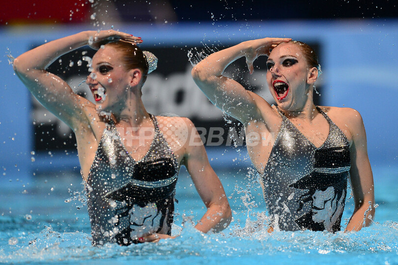【7月22日 AFP】第15回世界水泳選手権(15th FINA World Championships)は21日、スペイン・バルセロナ(Barcelona)でシンクロナイズドスイミングのデュエット・テクニカルルーティン(TR)が行われ、ロシアのスベトラナ・ロマシナ(Svetlana Romashina)/スベトラナ・コレスニチェンコ(Svetlana Kolesnichenko)組が優勝した。(c)AFP