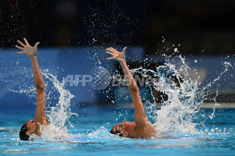 【7月22日 AFP】第15回世界水泳選手権(15th FINA World Championships)は21日、スペイン・バルセロナ(Barcelona)でシンクロナイズドスイミングのデュエット・テクニカルルーティン(TR)が行われ、ロシアのスベトラナ・ロマシナ(Svetlana Romashina)/スベトラナ・コレスニチェンコ(Svetlana Kolesnichenko)組が優勝した。(c)AFP