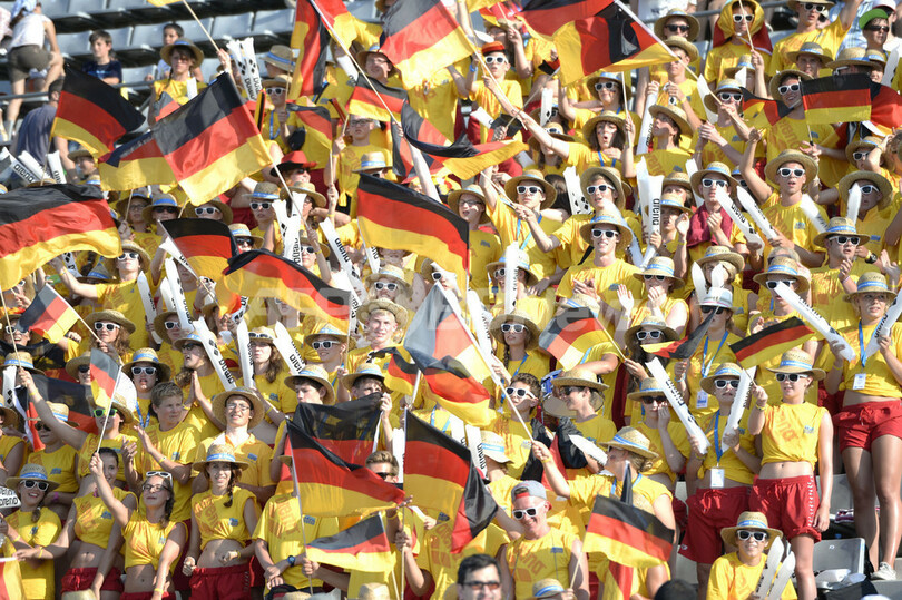 ドイツ組の優勝に歓喜するファン(2013年7月21日撮影)。(c)AFP/LLUIS GENE