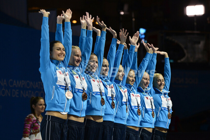 【7月23日 AFP】第15回世界水泳選手権(15th FINA World Championships)は22日、スペイン・バルセロナ(Barcelona)でシンクロナイズドスイミングのチームテクニカルルーティン(TR)決勝が行われ、ロシアが96.6点で金メダルに輝いた。