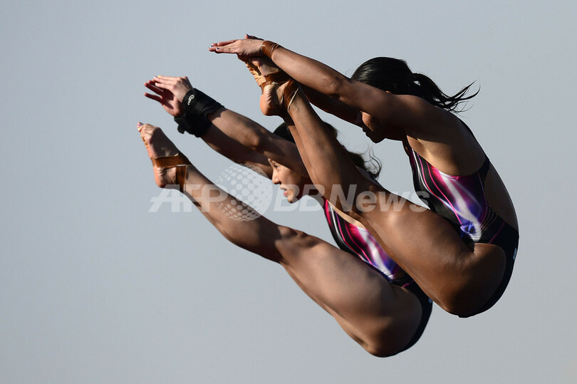 カナダのミーガン・ベンフェイト(Meaghan Benfeito)/ロゼリーヌ・フィリオン(Roseline Filion)組が最終試技でマレーシアのパンデレラ・リノン・パン(Pandelela Rinong Pamg)/ムン・イー・レオン(Mun Yee Leong)組を約0.3点しのぎ、合計331.41点で銀メダルを獲得した。マレーシアのペアは、331.14点で2009年の第13回世界水泳選手権(13th World Swimming Championships)に続き銅メダルを手にしている。(c)AFP