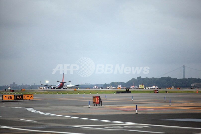 【7月23日 AFP】米ニューヨーク(New York)のラガーディア空港(La Guardia Airport)で22日、テネシー(Tennessee)州ナッシュビル(Nashville)発のサウスウエスト航空(Southwest Airlines)345便のボーイング(Boeing)737-700型旅客機が、機体前部の降着装置が壊れたため機首を滑走路にこすり付けながら着陸した。
