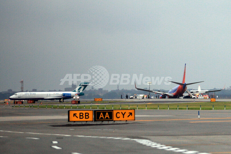 【7月23日 AFP】米ニューヨーク(New York)のラガーディア空港(La Guardia Airport)で22日、テネシー(Tennessee)州ナッシュビル(Nashville)発のサウスウエスト航空(Southwest Airlines)345便のボーイング(Boeing)737-700型旅客機が、機体前部の降着装置が壊れたため機首を滑走路にこすり付けながら着陸した。