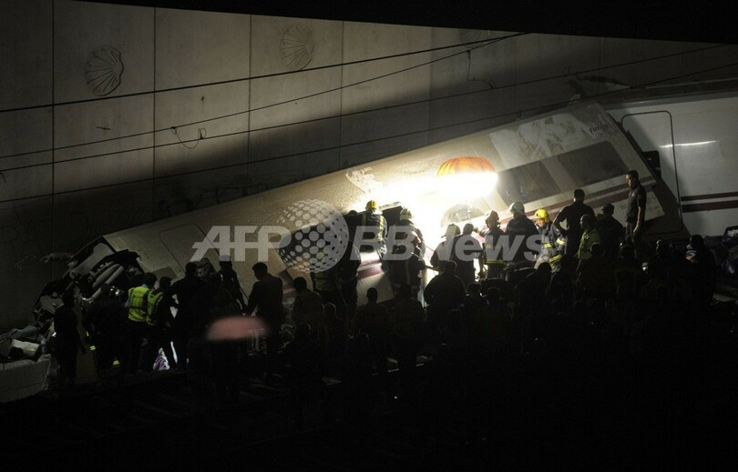 【7月25日 AFP】(一部更新、写真追加)スペイン北西部ガリシア(Galicia)自治州サンティアゴ・デ・コンポステーラ(Santiago de Compostela)市近郊で24日午後8時42分(日本時間25日午前3時42分)ごろ、旅客列車が脱線する事故が起きた。現地の司法当局者の25日未明の発表によると、これまでに77人の死亡が確認され、負傷者は143人に上っている。