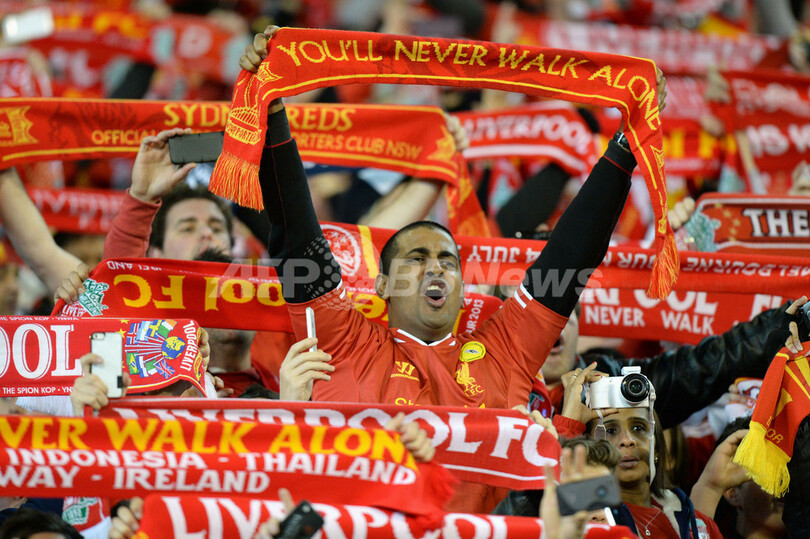 声援を送るリバプールのサポーター(2013年7月24日撮影)。(c)AFP/Mal Fairclough