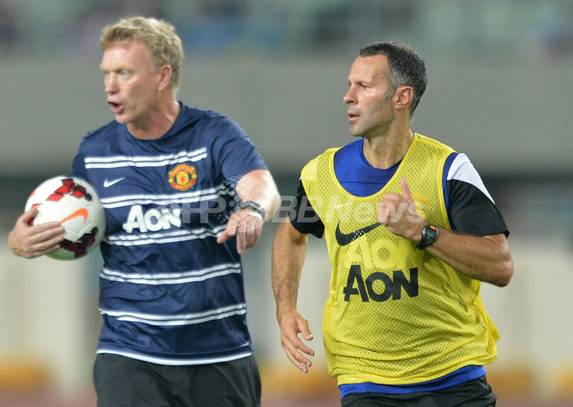練習に臨むデビッド・モイーズ(David Moyes)監督とライアン・ギグス(Ryan Giggs、2013年7月25日撮影)。(c)AFP/KAZUHIRO NOGI