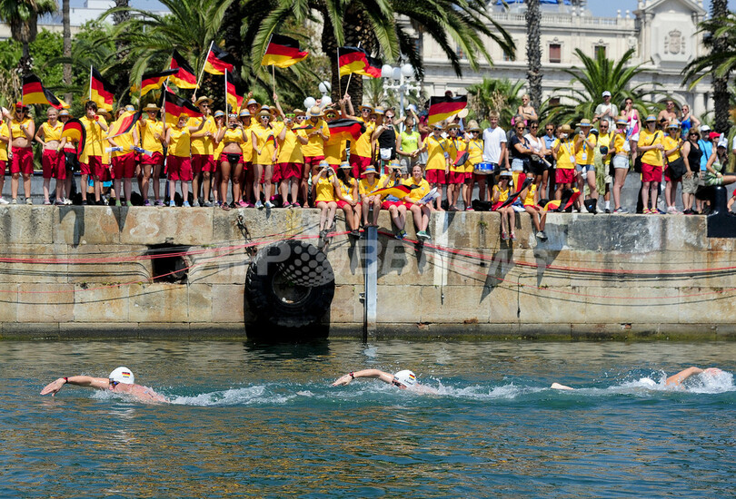 【7月26日 AFP】第15回世界水泳選手権(15th FINA World Championships)は25日、スペイン・バルセロナ(Barcelona)でオープンウオーター団体5キロメートルが行われ、ドイツが52分54秒9で優勝した。2位にはギリシャが54分03秒3で、3位にはブラジルが54分03秒5で入った。(c)AFP