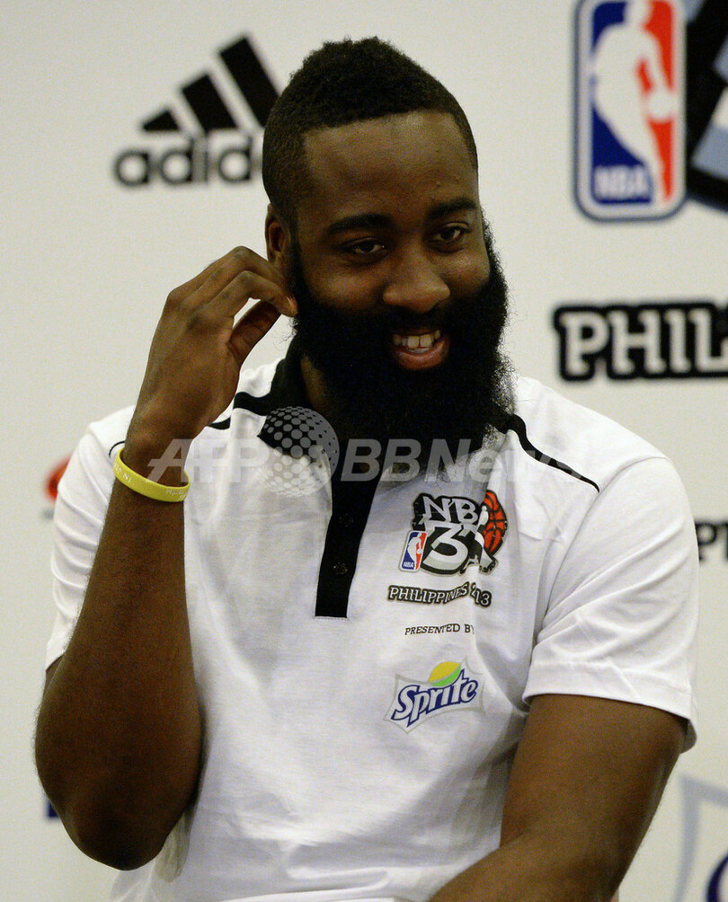 写真は記者団の質問に答えるハーデン選手(2013年7月25日撮影)。(c)AFP/TED ALJIBE