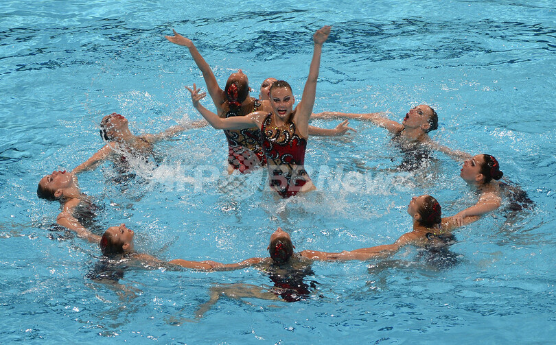 【7月28日 AFP】第15回世界水泳選手権(15th FINA World Championships)は27日、スペイン・バルセロナ(Barcelona)でシンクロナイズドスイミングのフリーコンビネーション(FC)決勝が行われ、ロシアが優勝を飾った。(c)AFP