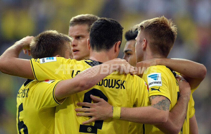 バイエルンのトーマス・ミュラー(Thomas Mueller)のシュートがバーに弾かれる中、ドルトムントは後半41分にオーバメヤンが作ったチャンスからロイスがチーム4得点目を決め、8月9日に開幕する13-14ドイツ・ブンデスリーガを控え、絶好のタイミングでチームを鼓舞する勝利を手にした。(c)AFP