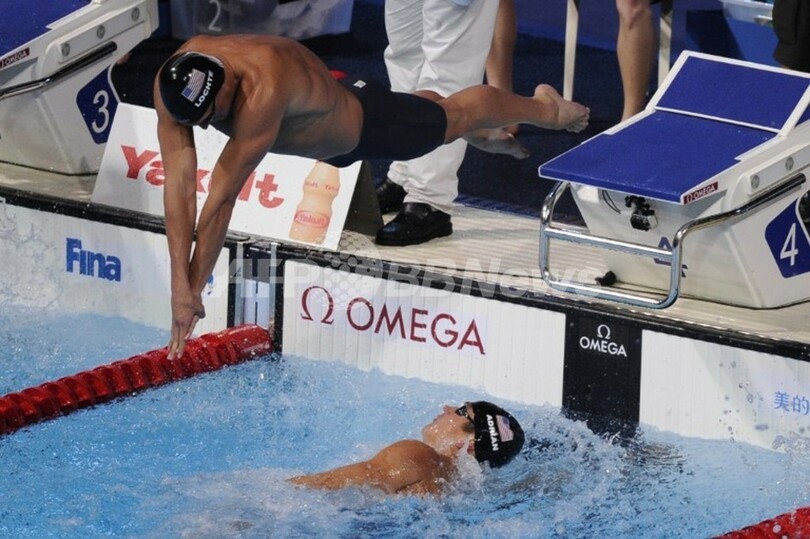 レースに臨む米国のライアン・ロクテ(Ryan Lochte、上、2013年7月28日撮影)。(c)AFP/JOSEP LAGO