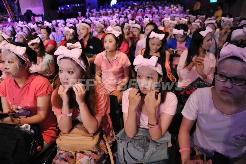 美容フェイスマスクつけた台湾女性1200人、ギネス記録に挑戦