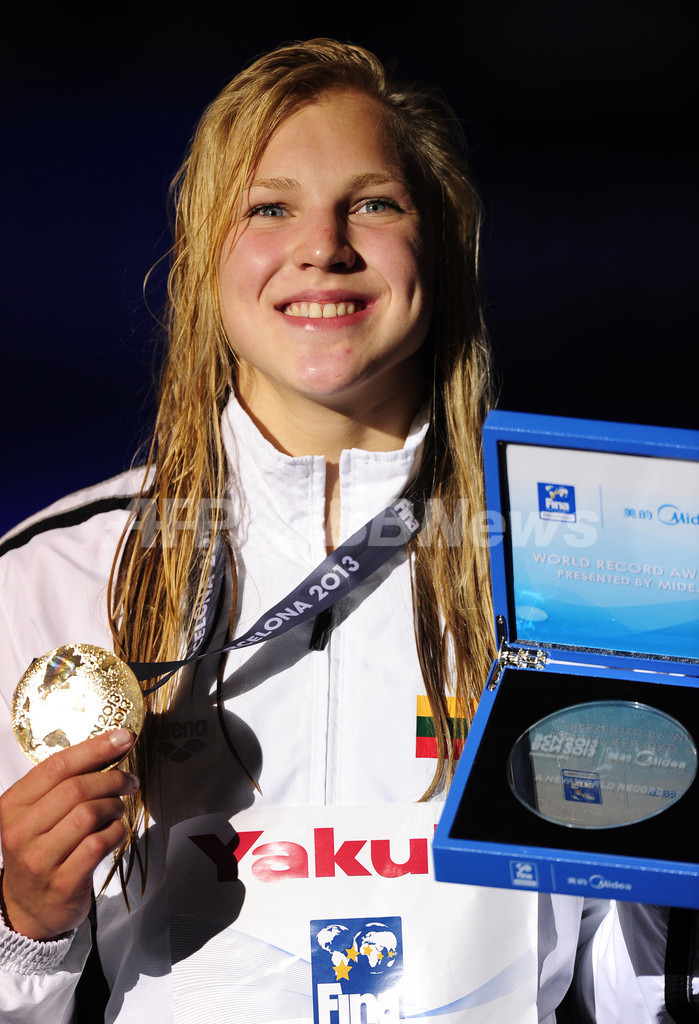 【7月31日 AFP】第15回世界水泳選手権(15th FINA World Championships)は30日、スペイン・バルセロナ(Barcelona)で競泳女子100メートル平泳ぎの決勝が行われ、五輪金メダリストのルタ・メイルティテ(Ruta Meilutyte、リトアニア)が1分4秒42で優勝した。