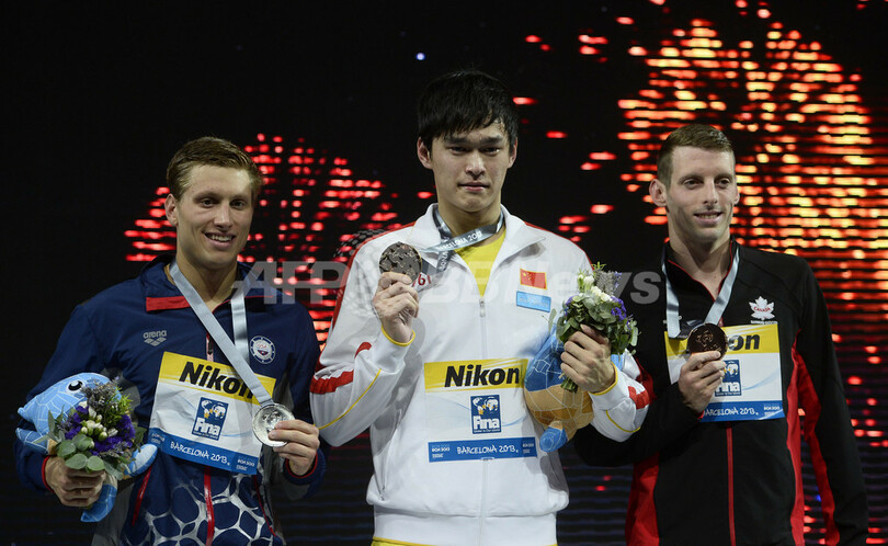 【8月1日 AFP】第15回世界水泳選手権(15th FINA World Championships)は31日、スペイン・バルセロナ(Barcelona)で競泳男子800メートル自由形の決勝が行われ、中国の孫楊(Yang Sun、ソン・ヨウ)が7分41秒36で金メダルを獲得した。
