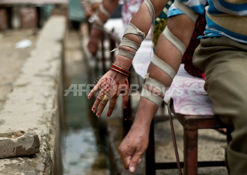 【7月31日 AFP】インド、オールドデリー(Old Delhi)の暑い日差しの中、3児の母リラバティ・デビさんは、微動だにせず立つ。その腕の血管を、施術者と助手が探る。やがて、施術者はカミソリを手に、デビさんの肌に慎重に切り目を入れて「汚れた血」を流れ出させる。