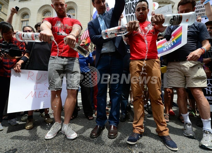 ウオツカ流しロシアの反同性愛法に抗議、米NY