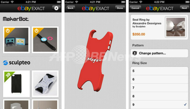 「イーベイ(eBay)」も3D業界新技術がもたらすチャンスを逃がすまいと猛攻している。最近もeコマースサイト「eBay EXACT」のアプリを発表した。このアプリはまだなじみのない3Dプリントによって作られた商品を、おなじみのイーべイから購入することができる。