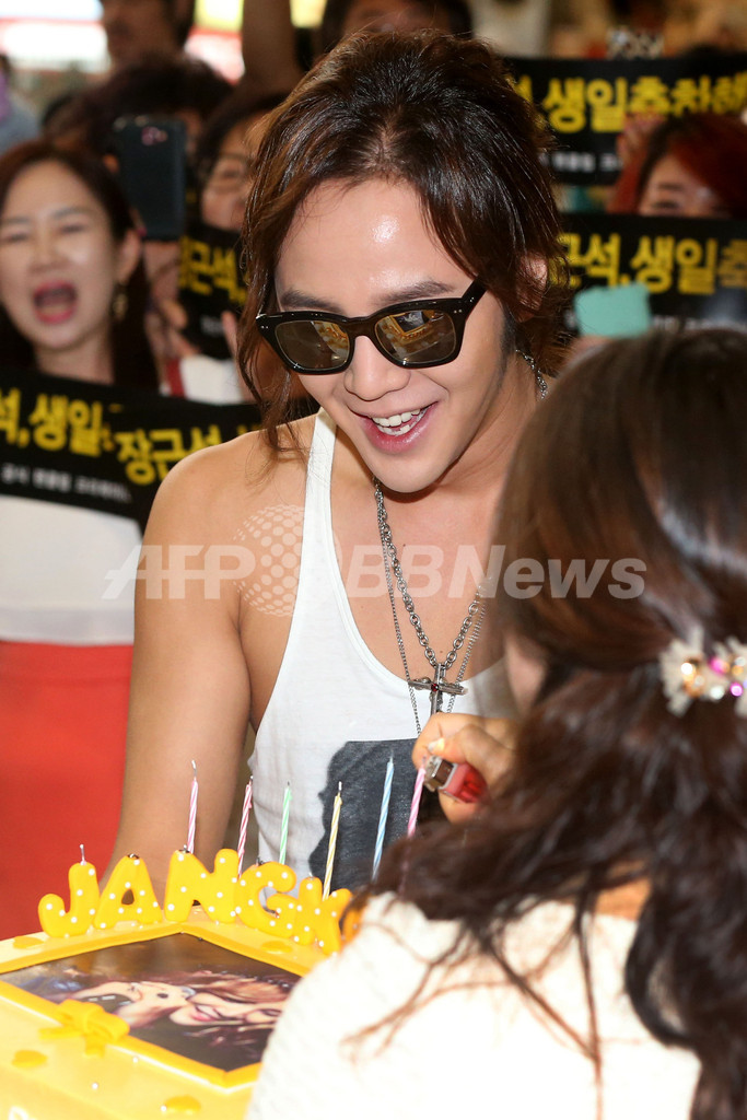 俳優のチャン・グンソク(Jang Keun-Suk)が1日、韓国・金浦国際空港(Gimpo International Airport)でファンが用意した誕生日パーティーに参加した。チャン・グンソクは東京と大阪で公演を行うために、日本に向けて出国する際、用意された誕生日パーティーに登場し、フォトタイムを設けるなどファンサービスを行った。写真は、金浦国際空港でファンが用意した誕生日パーティーに登場したチャン・グンソク(2013年8月1日撮影)。(c)STARNEWS