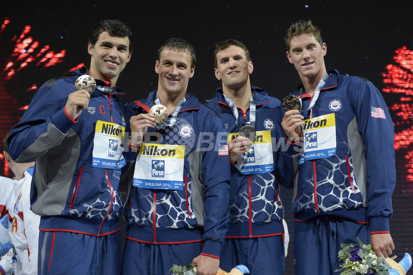 【8月3日 AFP】第15回世界水泳選手権(15th FINA World Championships)は2日、スペイン・バルセロナ(Barcelona)で競泳男子4x200メートルリレー決勝が行われ、米国が7分1秒72で金メダルに輝いた。