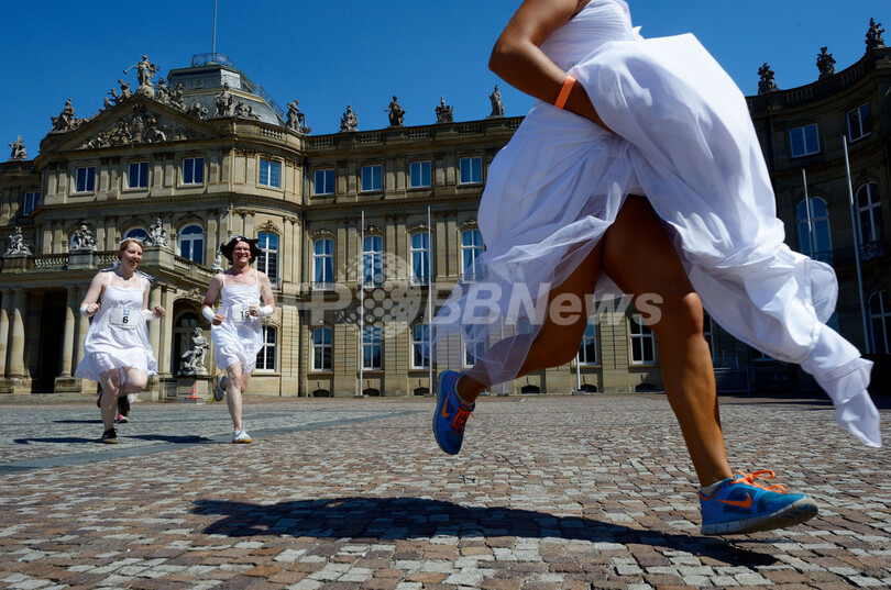 花嫁たちが走る「ブライド・ラン」、独シュツットガルトで開催