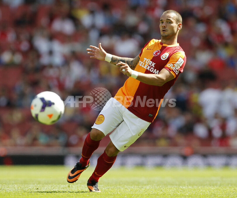 パスを狙うガラタサライのウェズレイ・スナイデル(Wesley Sneijder、2013年8月3日撮影)。(c)AFP/IAN KINGTON