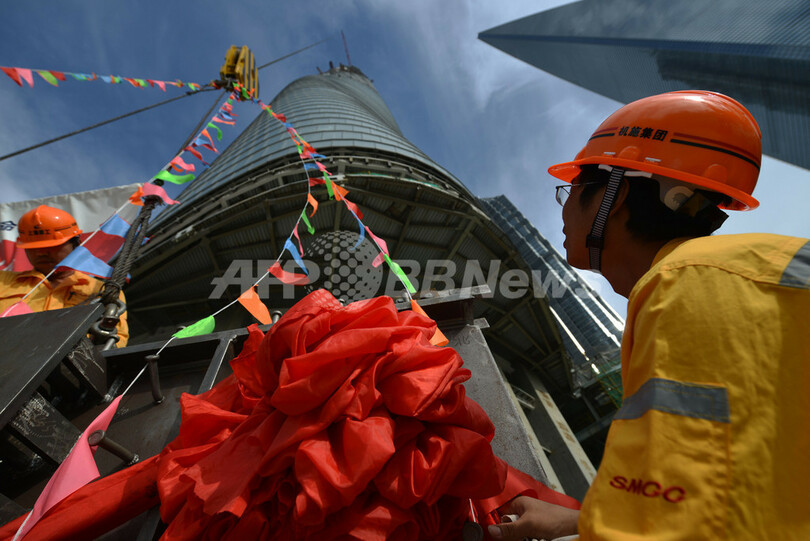 地上580メートルの高さでクレーンが最後の鉄骨を積み上げた時点で、上海タワーは台湾にある高さ509メートルの超高層ビル「台北101(Taipei101)」を追い抜き、アジアで最も高いビルとなった。世界的には、アラブ首長国連邦(UAE)ドバイ(Dubai)にある高さ約830メートルの「ブルジュ・ハリファ(Burj Khalifa)」に次ぐ高さだ。